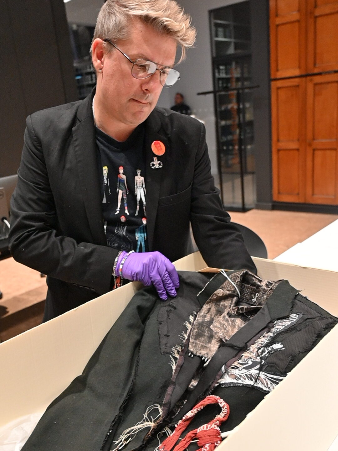 To be in the same room with Bowie’s costumes — to hold them in your hands — is surreal beyond measure. When they brought out the Blackstar suit he wore in the video, I could barely breathe. The weight of it, the stitching, the energy still humming through the fabric… it was like touching a fragment of his creative spirit.