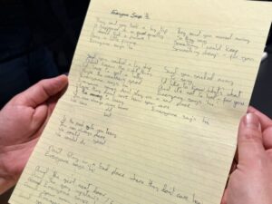 And that was just one of several extraordinary moments. We also had private archive appointments, and what we thought might take an hour stretched into nearly three — three hours of paging through handwritten lyrics, studio notes, and personal materials from Station to Station, Lodger, Heathen, and Blackstar. So many unseen scraps of brilliance: doodles, revisions, fragments of ideas that became songs we know by heart. At one point, I found myself holding the actual Blackstar lyric book from the video — that stark black book with its haunting presence. I had tears in my eyes.